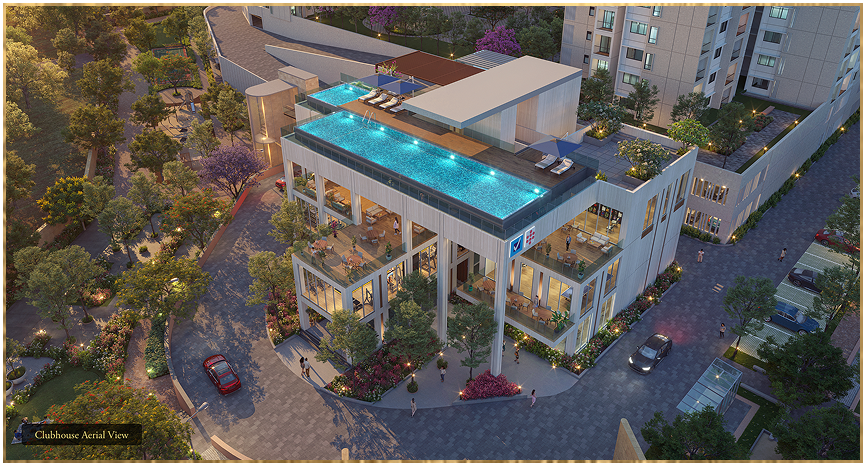 TAs you move deeper into the experience, two elegant towers rise gracefully, housing 359 residences thoughtfully planned to bring in light, openness, and scenic views. The 3 BHK and 4 BHK layouts are crafted for those who seek expanse, refinement, and harmony in their living spaces. Here, life transcends the ordinary, unfolding into exceptional lifestyle privileges; a signature clubhouse crafted for indulgence and connection, an iconic infinity-edge pool that seamlessly merges with the skyline and curated amenities that elevate everyday luxury. Every element reflects refined sophistication, redefining the essence of exceptional living.